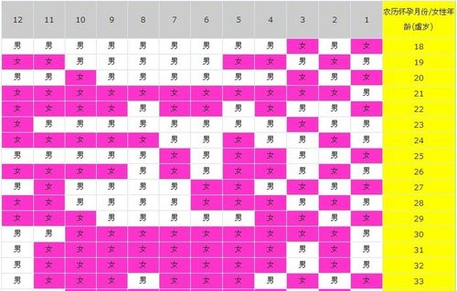 仅供参考 年龄 (虚龄)怀孕月份(农历) 1234567891011 18女男女男男男男男男男男 19男女男女女男男男男男女 20女男女男男男男男男女男 21男女女女女女女女女女女 22女男男女男女女男女女女 23男男女男男女男女男男男 24男女男男女男男女女女女 25女男男女女男女男男男男 26男女男女女男女男女女女 27女男女男女女男男男男女 28男女男女女女男男男男女 29女男女女男男男男男女女 30男女女女女女女女女女男 31男女男女女女女女女女女 32男女男女女女女女女女女 33女男女男女女女男女女女 34男女男女女女女女女女男 35男男女男女女女男女女男 36女男男女男女女女男男男 37男女男男女男女男女男女 38女男女男男女男女男女男 39男女男男男女女男女男女 40女男女男女男男女男女男 41男女男女男女男男女男女 42女男女男女男女男男女男 43男女男女男女男女男男男 44男男女男男男女男女男女 45女男男女女女男女男女男。