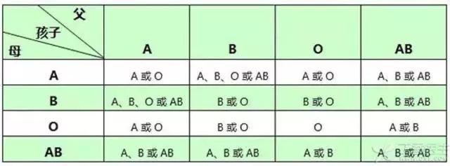 因此,根据上述血型遗传规律,丈夫和妻子的血型为“a”型和“o”型时,婴儿的血型除了“a”之外还有“o”型。