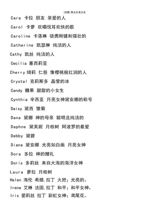 eartha 尔莎 英国 土地或泥土;比喻像大地般坚忍的人。 eden 伊甸 希伯来 圣经中的乐园,欢乐之地。 edith 伊蒂丝 古英国 格斗;战争。 edwina 艾德文娜 英国 有价值的朋友;财产的获得者。 eileen 爱琳 盖尔 光亮的,讨人喜欢的。 elaine 伊莲恩 法国 光亮的;年幼的小鹿。 eleanore 艾琳诺 法国 光亮的;多产的,肥沃的,有收获的。 elizabeth 伊莉莎白 希伯来 上帝的誓约。 ella 艾拉 条顿 火炬 ellen 艾伦 希腊、拉丁 火把 elma 艾尔玛 希腊 富爱心的人,亲切的。 elsa 爱尔莎 希腊 诚实的。 elsie 艾西 希伯来,希腊 上帝的誓约,诚实的。 elva 艾娃 斯堪的那维亚 神奇且智能的。 elvira 艾薇拉 拉丁 小精灵,白种人的。 emily 艾蜜莉 条顿,拉丁 勤勉奋发的;有一口响亮圆润的嗓音之人;拍马屁的人。 emma 艾玛 条顿 祖先。 enid 伊妮德 塞尔特人 纯洁得毫无瑕庛。 erica 艾丽卡 条顿 有权力的;帝王的;统治者。 erin 艾琳 盖尔 镶在海中是的翡翠;和平,安宁之源。 esther 艾丝特 希伯来 星星 ethel 艾瑟儿 英国 尊贵的;出身高贵的。 eudora 尤朵拉 希腊 可爱的赠礼,美好的、愉快的。 eunice 尤妮丝 希腊 快乐的胜利。 evangeline 伊文捷琳 希腊 福音的信差,福音;天使 eve 伊芙 希伯来 生命;赋予生命者生灵之母 evelyn 伊芙琳 塞尔特 生命;易相处的人;令人愉快的人。