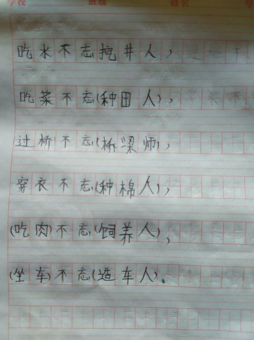 造句:今天的幸福生活来之不易,人们应饮水思源,不忘自己肩负的责任。