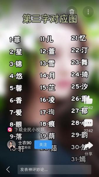 1梦 2茜 3宝 4清 5天 6嘉 7宫 8璃 9语 10智