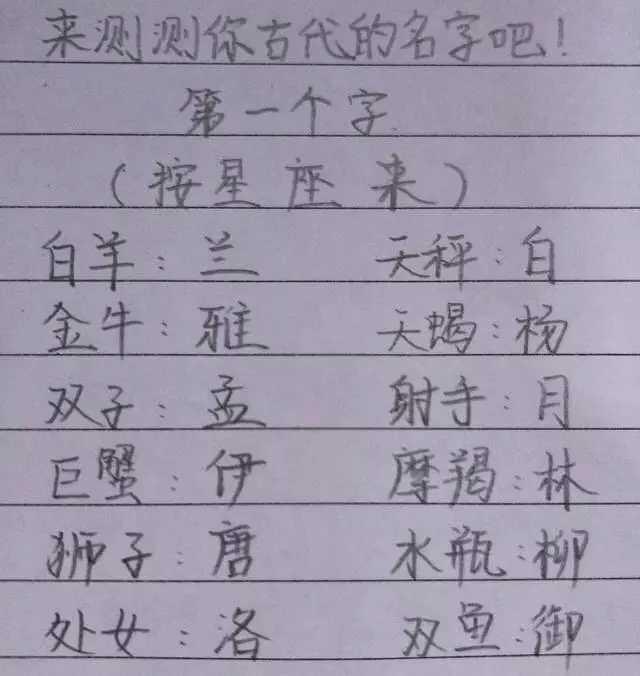 好厉害啊。 (女版)姓)年末数) 0南宫1东方2赵3林4西门5萧6柳7花8薛9水名(月) 1如梦2若鱼3婉儿4蝶依5薰然6莹玉7香苑8星雨9花蕊10紫蝶11灵梦12纱绫测试我古代名字。 我在古代被称为什么