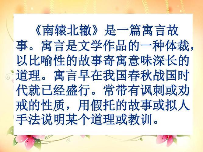 3《南辕北辙》 nn yun bi zh寓言故事《战国策魏策四》讲述了一个人坐车去楚国,但由于选择相反的方向不听别人的忠告,只能离楚国很远。 我们告诉我们,无论做什么事,首先要看清方向,才能充分发挥自己的有利条件; 如果方向错了,有利条件只会起到相反的作用。