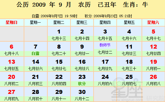 2009年09月24日农历八月初六星期四冲虎
