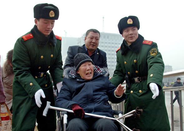 关于百里,百姓支持老人,带着孩子在路上迎接。