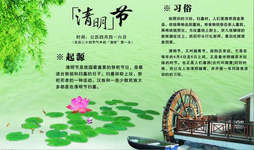 春秋时期,晋公子闻讯流亡,半路饿晕,臣介子推大腿肉给他吃。 之后,儿子重耳成为晋文公,封忠臣忘了推介子。 仔细回想的时候,介子不想再当官了,背着母亲隐居在绵山。 一听就点燃了山,带他出了山,但在火灾中烧了三天也没有人出来。 我去山上找了一下,发现他和他妈妈都被烧死了。 烧焦的柳树上出现了带血诗的衣领。 “切肉奉君,尽丹心,愿主君常清明”。 在那里倾听,把点燃山的这一天定为寒食节。 第二年第二天,我去爬山祭奠,发现老柳复活了,定名为“清明柳”,定为清明节,祭拜介错人,鼓励自己勤奋清明。 现在清明节合二为一,一是为了感恩纪念,二是促进新生保护。 我国最早的太阳历及《国礼春官》,记载了“冬夏邀日,春秋邀月,分辨四时叙”天文历最基本的常数。 农耕社会以后,工人发现日、月、年构成历法三要素,两千多年前秦汉时期已基本形成二十四节气。 24节气综合天文学和气象学等知识,编制了“春雨惊春清谷天、夏满芒夏暑相连”。 秋天下秋霜,冬天下雪,冬天下雪,冬天下小寒”的歌谣。 其中清明排在歌谣的第五位。 这也是农历的第五个节气。 此时天气转暖,大地回春,万物复苏,生机盎然,家家户户门口插着柳枝,祭奠着坟墓、郊外的青翠土地。 农事谚语中也有“清明种小米”的说法。 作为象征花信的花信风。 清明花期为侯桐花、二侯麦花、三侯柳花,充分揭示了清明节空气花期和花种。《岁时百问》说:“万物生长之时,皆清洁干净,故称清明。” 非原创清明既是节气也是节日。 清明是我国农历二十四节气中的第五个节气。 为什么又是节日呢? 这可以追溯到古代的“寒食节”。 寒食节是每年冬至后的第105天,正好是清明的前一天,过去民间每逢寒食节,家家户户都不上火煮饭,只吃冷食。 第二天清明,人们进入坟墓烧纸,修墓添土,表达对死者的怀念。 这些风俗是春秋时代传下来的。 从节日说起,清明是寒食节的发展。 寒食节的由来是春秋时晋文公流亡列国,侍从大臣介子切腿充饥。 文公复国后,子不求利禄,随母隐居绵山。 文公不好找,放火把他逼出来。 谁知子按着矢志不渝,抱着树死了。 为了悼念他,文公下令,在他殉难之日(清明前一天或两三天),全国寒食禁火,然后演化为节。 也有学者认为寒食习俗来源于原始氏族社会的改火风俗和由此发展起来的奴隶制社会的禁火制度。 证据就是,唐人韩翊的《寒食》首诗,“日暮汉宫传蜡烛,冒烟散王侯家”,至今仍是一些少数民族遗留下来的每年“取新火”的习俗。 由于两节相似,许多节庆活动繁重,长期寒食节和清明节不仅没有严格的区别,反而被后者所取代。 清明后来演化为民俗节,其主要风俗活动是祭祀鬼神,故又称鬼节、冥节、死人节。 因为也有踏青、郊游的风俗,所以也被称为踏青节。 “清明”又是“聪明”的谐音,所以有些地方也被称为“聪明节”。 鬼节,死人节,是同样的意思。 因为人死了被称为“鬼”。 传说鬼住在阴曹地府,也就是所谓的“冥界”,所以被称为冥节。 清禄《清嘉录》记载:“建土俗家祭,清明、七月半、十月朝为鬼节,端午、冬至、年夜为人节。” 清明是三个鬼节中的第一个,祭祖的风俗也很重。 清明是鬼节,所以这一天祭祖,叫做“祭”,意思是鬼在这一天过节。
