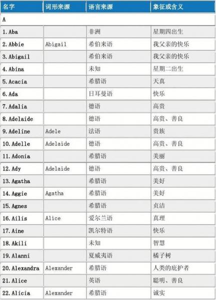 女生英文名大全
