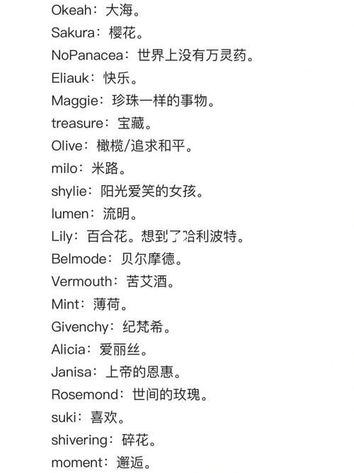Fern寓意勤奋好学文静Alice寓意高贵Bunny丰富多彩友好可亲Belle寓意优雅美丽开朗热情Estelle独立友好温暖Jasmine有鲜花芬芳意向Iris是苗条细致的理想主义者Emily是小! 适合你高贵的身份。 哈哈哈