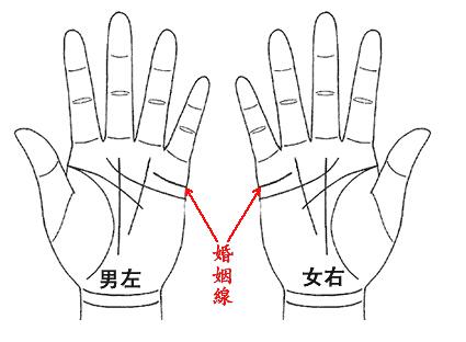 男人和女人右边对。 男性看左手的话,右手看父母。 女性则恰恰相反