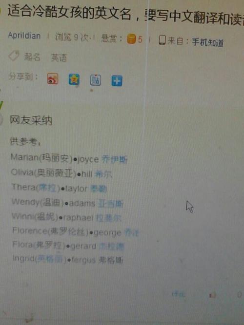-----------有很多专业的英文取名的网站。百度一下“取英文名”就可以找到。具体当然要根据自己的需要。很多网站都不错的。有英文名词义解释,性格分析,中文名字对照。我的英文名就是这样取的哦。希望对你有帮助!selina 月光之意.selina给人的印象是个性开朗,面貌柔美的女子,温柔娴熟,但有人认为她的个性阴晴不定难以捉摸. serena (拉丁)"温和;沉著的".serena给人两种不同的印象:可爱活泼充满惊喜的女孩;或是文静胆怯,虔诚的信徒. sharon(希伯来文)同sarah.大部份人期待的sharon是娇小可爱,中层阶级的金发女子,友善,甜美,聪慧.有人则认为sharon是害羞迟钝的. sarah (希伯来)"公主". sarah这个名字让人联想到矮小,美丽,卷发的女孩,保守又友善. sabrina(拉丁语)来自边界.人们认为sbrina是美丽性感的女子,热情而俏皮. sandraalexandra的简写.sandra这个名字给人两种印象,一种是聪明的金发女子,坚决有自主权;另一种则是丰满的女人,声音甜美个性随和. samantha(亚拉姆语)"倾听者.samantha给人两种印像:一个是聪明,美丽的女子,另一个则是难缠的中年妈妈.VIVIAN 薇薇安