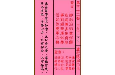 忠正是指品行要忠厚老实,俗话说好人有好报吗? 本签名曰“谋财,秋冬大利,春夏小利”。 交易成立,六畜好,找人见面,公诉吉。