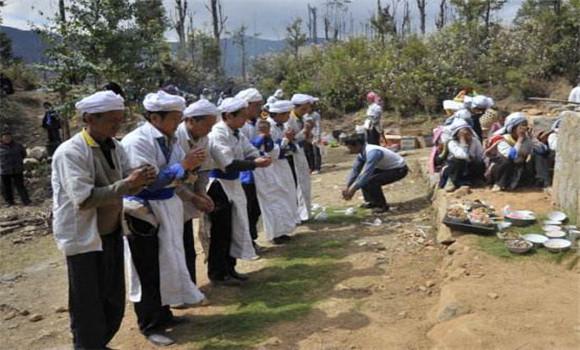 所以背新娘的人多是品德最好的人。 过河时,“迎娘”(由未婚女子负责)在旁边给新娘撑伞遮阴,在宽约五六十米的河里,迎亲队连成一条线,热闹非凡。 上岸后,乖巧的“迎娘”把伞放得很低,不让别人偷看裹着面纱的新娘。 龙胜的壮族婚姻是跨越“三关”突破“十门”的。 只有恋爱后决定结婚,才能结婚。 就是所谓的“三关”。 迎接、陪歌、出门、过村过村、过河过桥、入门、唱歌、回家、进洞穴,就是所谓的“十门”。 “过河”只是“十门”中的第五个“门”,“十门”过后才能进入洞穴。 勒勒和卜基壮家的女人生勒勒勒(壮语,即婴儿)时,那家的女人要自己去找“保姆”,为媳妇喂奶。 这是为了让产后的妻子好好休息,进行身体的维护。 “乳母”由产后5个月的女性负责,不需要报酬。 成为“保姆”是我的荣幸,被称为“第二母亲”。 孩子长大后,每到喜庆的季节,都要去“保姆”家拿礼物打招呼。 四岁孩子体弱多病,父母应以“卜基”(第二父亲)为孩子靠山,确保孩子健康。 “卜基”非常“尽职”,“上任”后,经常和孩子的父母商量,拿药,做各种各样的菜,让孩子健康成长。 孩子长大后,也要像“乳母”一样对待“丑女”,尽孝心。 高跷进村广西壮族自治区龙州县金龙地区壮族村寨里,人们出门进村时高跷行走。 到村口去。 高跷在特定的钉子上,下地劳动或去其他地方。 进村时,从钉子上取下高跷踩着,在门口的石阶前跳下,又把高跷挂在门边,洗了手脚,踩着楼梯上楼。 据说这是祖先传来的位于亚热带,常年多雨,道路泥泞不便行走,带泥脚进屋不卫生的鞋,发明了“非”字形的“高跷鞋”。 社会公祭