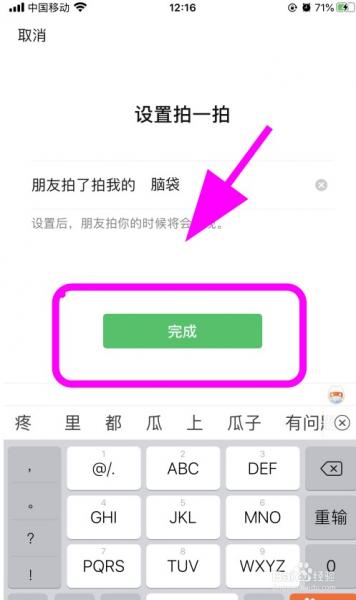 6、同时设置个性标签后,朋友拍下自己,XXX拍下自己的老母就会出现”。
