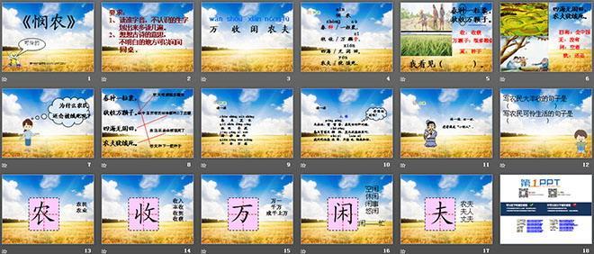 第一、二句是“春种一粒小米,秋收万粒种子”,“春种”“秋收”概括写农民劳动。 从“一粒小米”变成“万粒孩子”,描绘丰收的样子。 第三句《四海无闲田》更写了全国土地开垦,一片田地也没有。 这一句和前两句的含义互补,更加显出丰硕、金黄的丰收景象。 工人辛勤劳动创造了这样巨大的财富,丰收之年应该吃穿够了吧。 谁也不知道结论是“农民还在饿死”。 这真是触目惊心! “犹”字令人深思,到底是谁剥夺了劳动成果,使农民丧命。 “饿死”三字深刻揭露了社会不公,凝聚了诗人强烈愤慨和真挚同情。