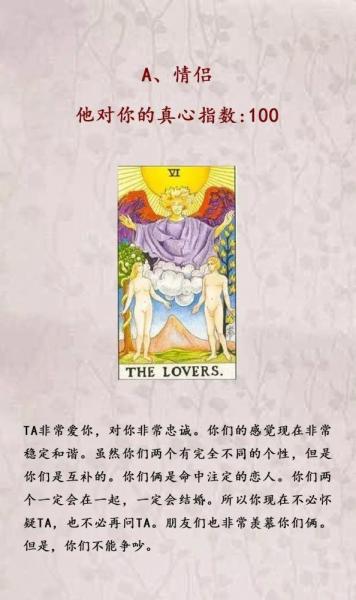 生日塔罗牌集团透析(皇帝愚者)你是一个独立自主的人,喜欢做先锋,追求第一,离开家乡的机会很多。 喜欢挑战新的工作和生活,有很强的优越感特质、好胜和自尊心,想集中力量,在社会上有名望和地位,但遇到感兴趣的东西,没有足够的动力和诱因,就没有很大的发展势头。 一生中有一个孤独的阶段,这个阶段要么是自己要求独立生活,要么是一个人,所以年轻的时候出去,很少在家,不管是工作还是读书,都可能很少回家。 寻找伴侣,有点曲折,找个能合作的人可能不容易,和自己最喜欢的人联系不上,但只要突破瓶颈,度过难关,就能建立一个相当好的家庭。 你的人生目标是找到让自己幸福的想法。 最终的人生目标是让自己的想法影响另一半,影响别人,进而影响周围的人,变得越来越广泛,把自己的想法慢慢拓展到一个领域,影响所有人,让人们相信你。 你的个性特征是快乐。 这并不意味着你不思考事情。 只能说是不喜欢烦恼,自己找各种各样的事情给别人添麻烦。 但是,你会考虑到应该考虑的事情。 总之,你的思想方面很开朗,习惯了偏向正面的思考。 你的优点是乐观,也喜欢给周围的人带来乐观开朗的气氛。 缺点是粗心大意,有时不在乎细节。 而且,你不擅长处理小事,容易逃跑。 你有时过于开朗,故意逃避什么,别人不知道你心里真的在想什么,会误会你的哦! 你的人生运势是先珍惜自己,再体谅别人,扩大朋友圈,再散发自己开朗乐观的性格,从而影响别人,如果遇到情况,你的运势该怎么办呢? 你必须请贵人帮忙。 朋友和幕僚帮助你或鼓励你是最好的。 藉由大家的力量可以把事情处理好。 我建议不要只靠自己解决问题。 你的天赋潜能具有很强的应对协调的能力和良好的沟通能力,所以经常能看到你在朋友中团转,扮演仲裁员。 因此,热衷于社团活动和与人合作,对兄弟姐妹和挚友也相当融洽。 总之,在与人脉有关的方面,你打点得很好。 无论从事商业或任何事业,都建议善于发挥潜能,与几个团体接触,多交流知识。
