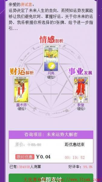 是农历十一月十八日的生日。 我想问一下现在的感情怎么样。 楼主! 根据你阳历的出生年月日,作为你个性和灵魂象征的塔罗牌是8号力牌! 表示“意识”。 就是人类有勇气无所畏惧地前进。 它表达了忠于爱情的意志力。 如果缺少了这个,人类就无法克服困难,无法产生更加前进的力量。 这表明我们必须凭借这些优秀的特质克服内心的兽性和冲动、愤怒和恐惧…